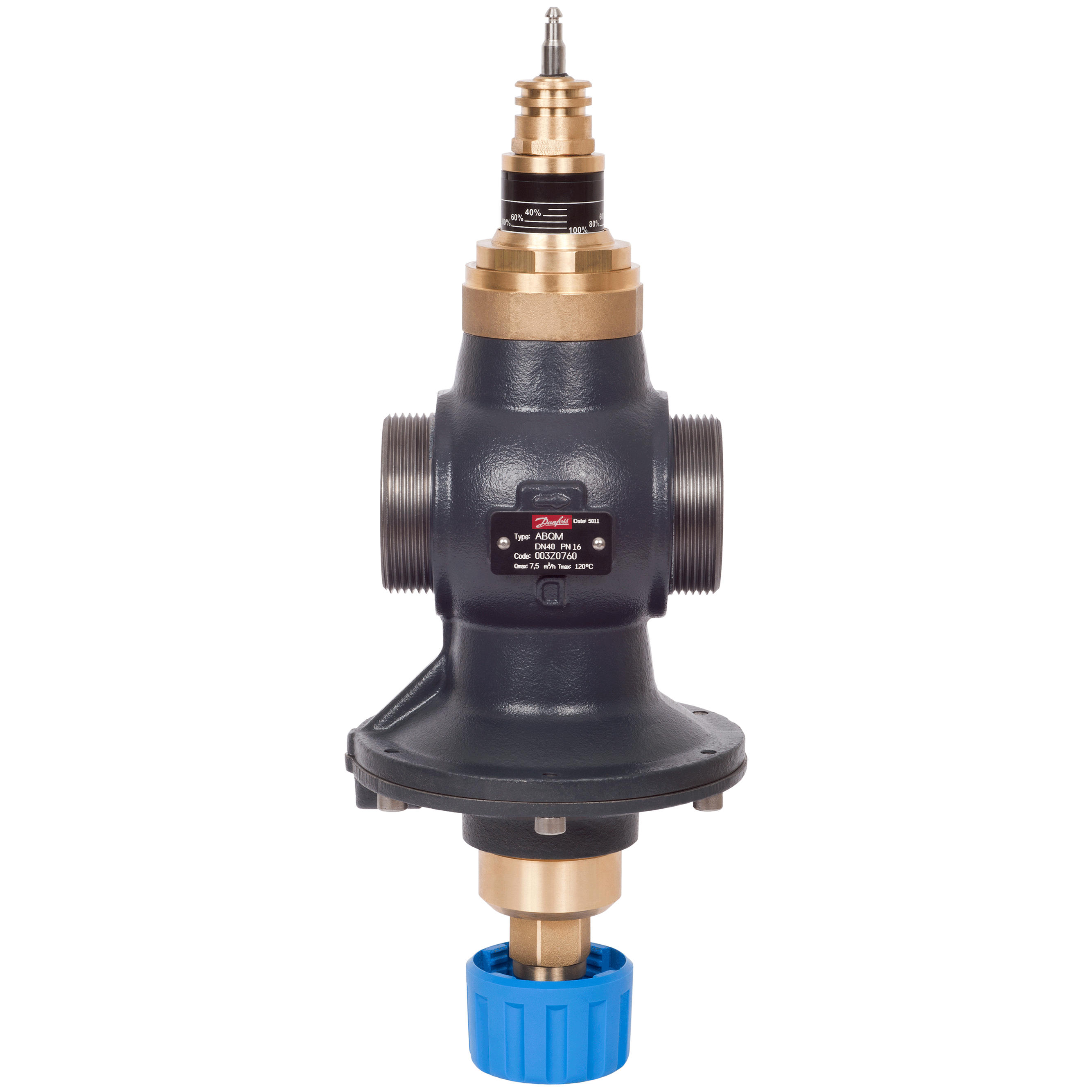 Комбинированный балансировочный клапан AQT c измерительными ниппелями, наружной резьбой. При применении без электропривода необходим фиксатор штока 003Z0695. В качестве регулирующего клапана может использоваться с электроприводами AME 435QM (без адаптера) или AMV(E) 25 SD, AMV(E) 25 SU с адаптером 003Z0694