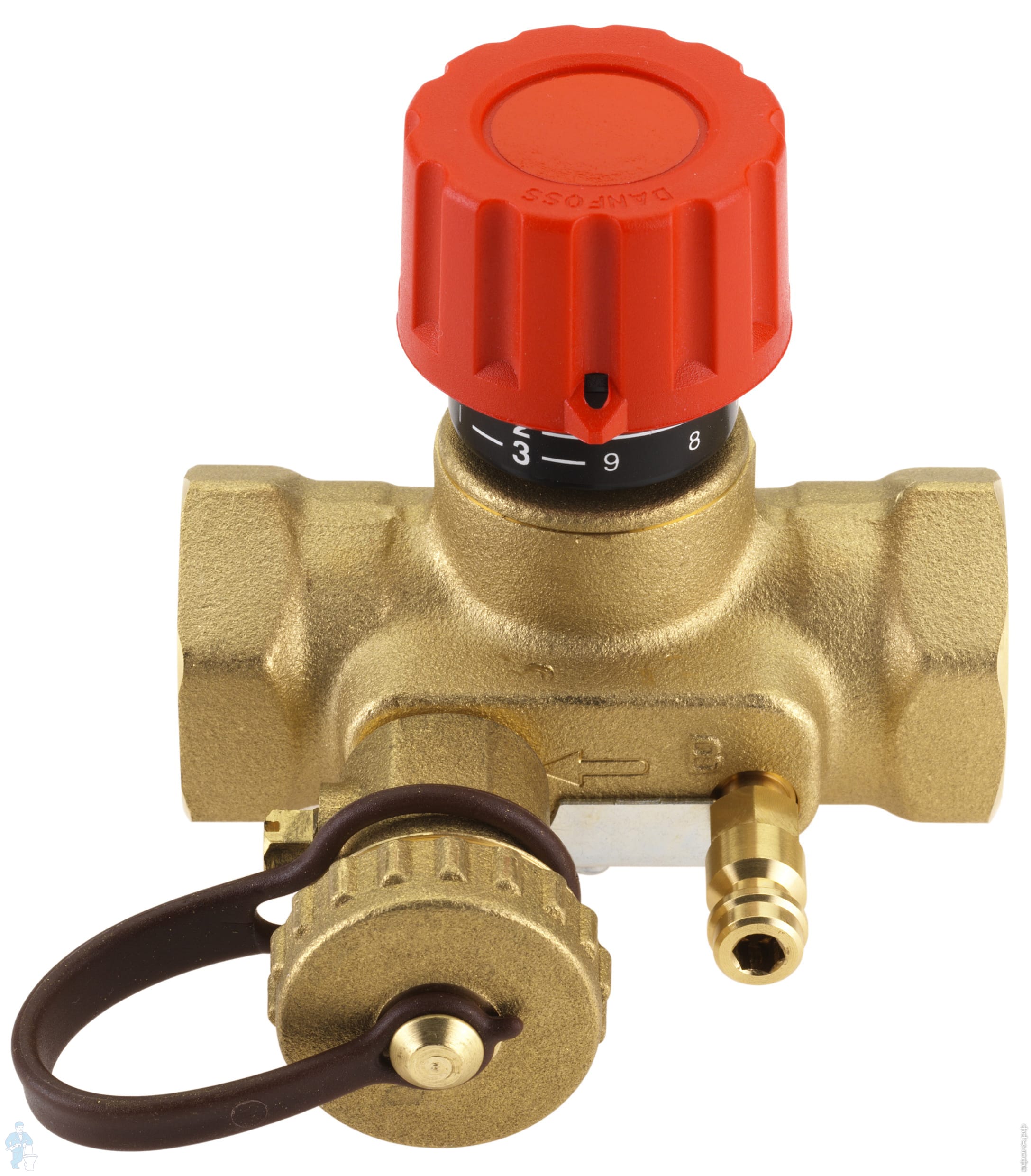 Ручной балансировочный клапан MNT с внутренней резьбой, фиксацией настройки, спускным краном и измерительным ниппелем.